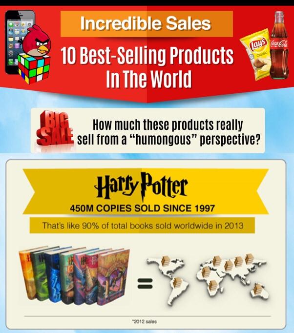 สินค้าขายดีที่สุดในโลก: แฮรี่ พอตเตอร์ - ยอดขายรวม 450 ล้านเล่ม หรือเท่ากับ 90% ยอดขายหนังสือทั่วโลกในปี 2013